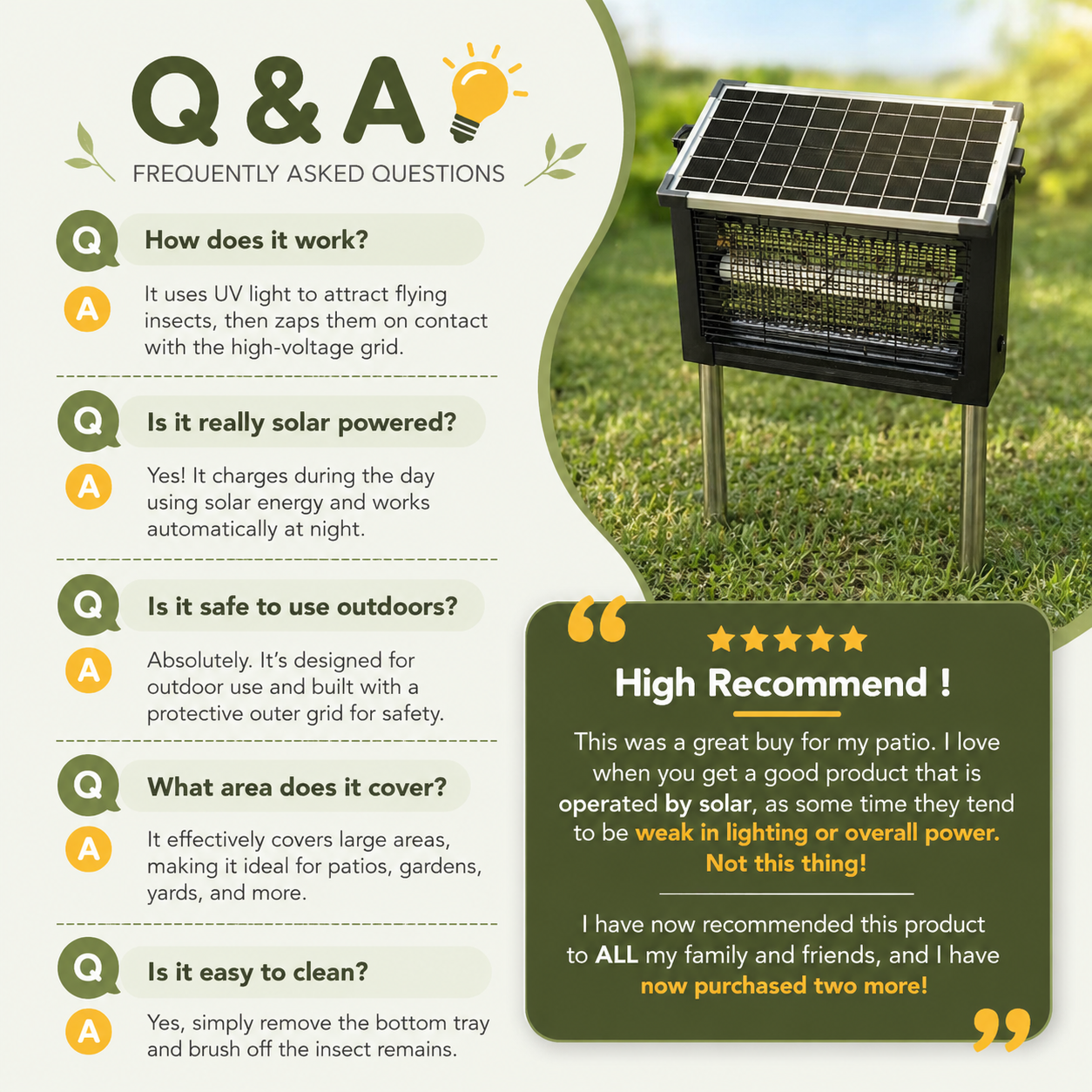 The VoltLeaf Sentinel uses a 365nm UV light to attract insects and a high-voltage grid to eliminate them on contact — all night, every night. No chemicals. No cords. No going inside early.